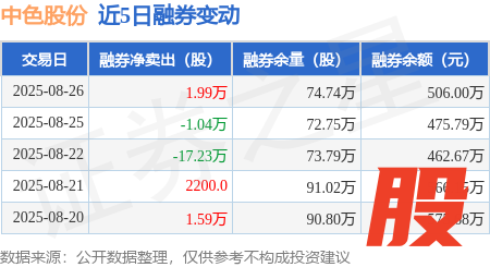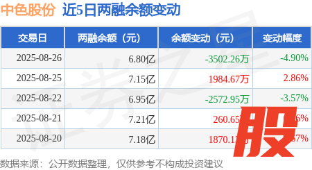 本站消息,8月26日,中色股份(000758)融资买入1.14亿元,融资偿还1.49亿元,融资净卖出3532.46万元,融资余额6.75亿元。